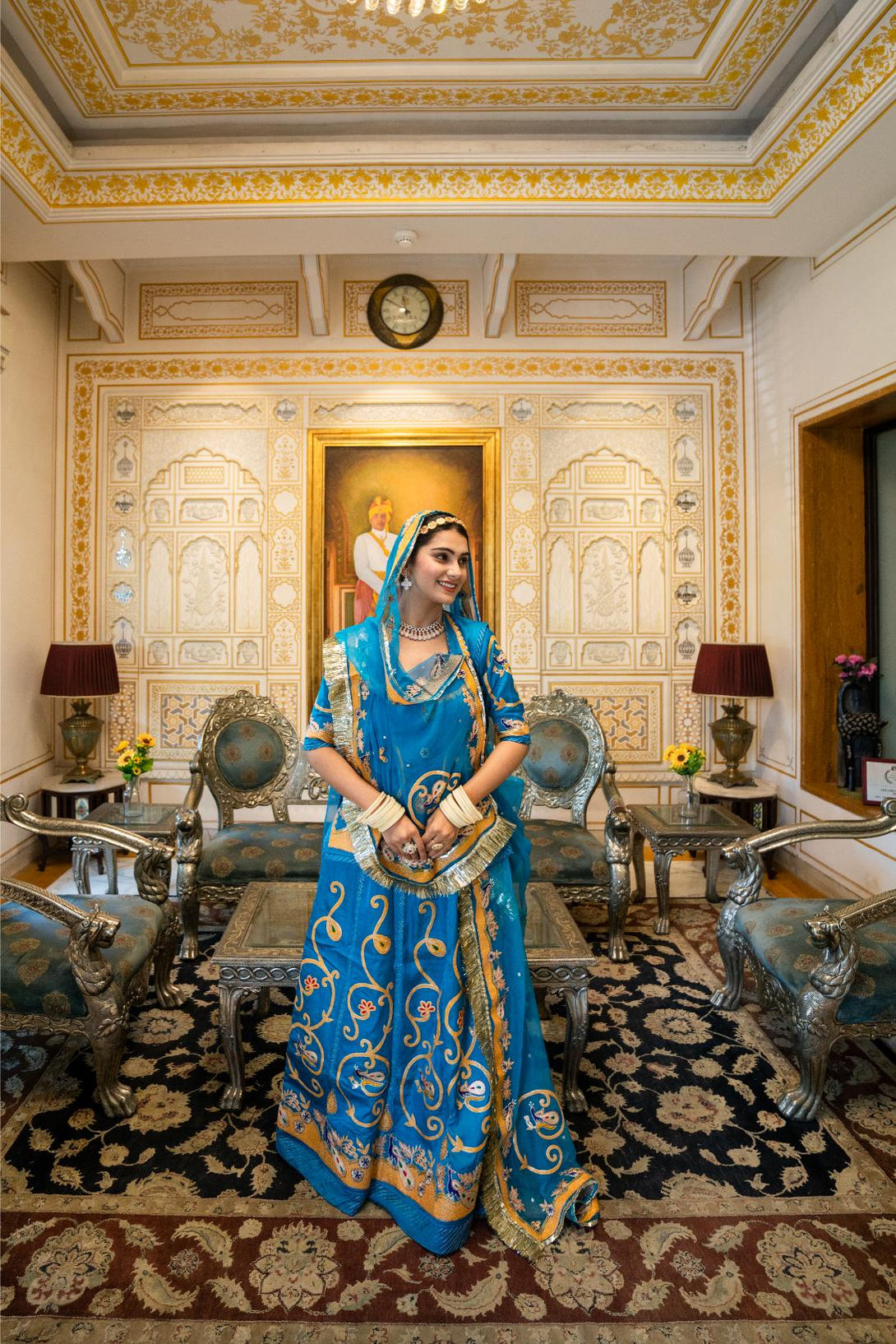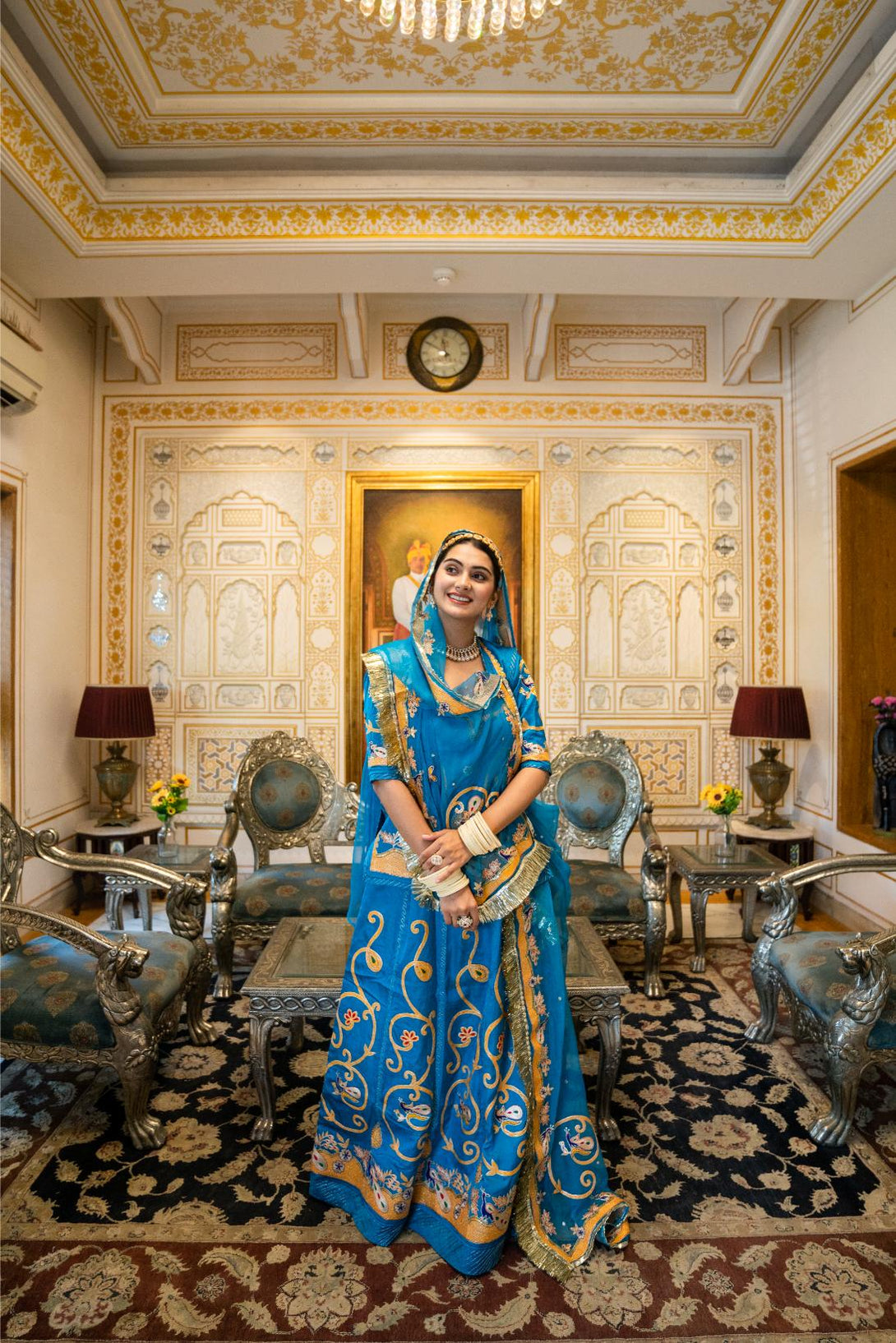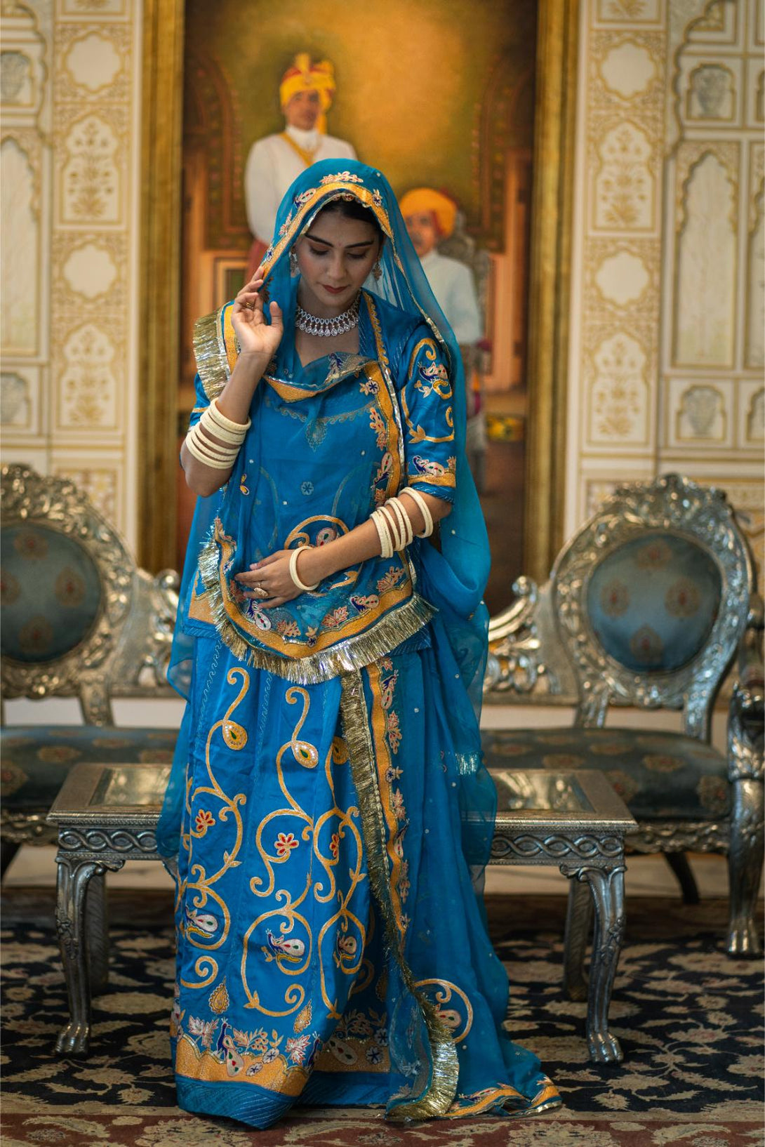 This Blue Satin Poshak, featuring intricate peacock embroidery, brings together luxury and tradition in perfect harmony. The rich satin fabric enhances the vibrant blue hue, while the detailed peacock design adds a regal and artistic touch. Ideal for weddings and festive events, this poshak ensures you make a striking impression with its elegance and grace.