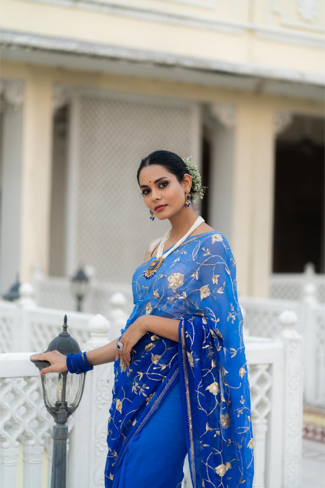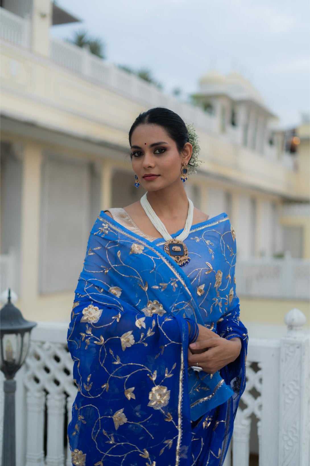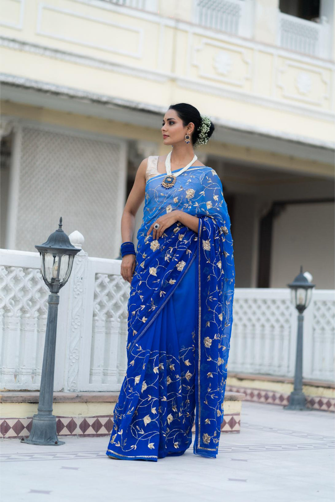 This Blue Shaded Pure Chiffon Saree with heavy jaal work is a perfect blend of elegance and artistry. The ombre blue shades add a modern twist, while the intricate jaal embroidery enhances the saree’s luxurious appeal. Lightweight and graceful, this saree is ideal for evening parties and special occasions, ensuring you stand out in style.