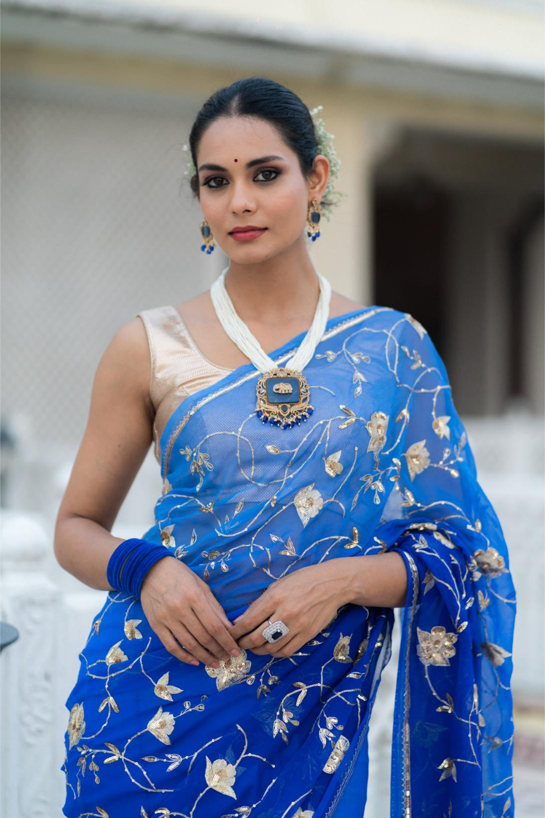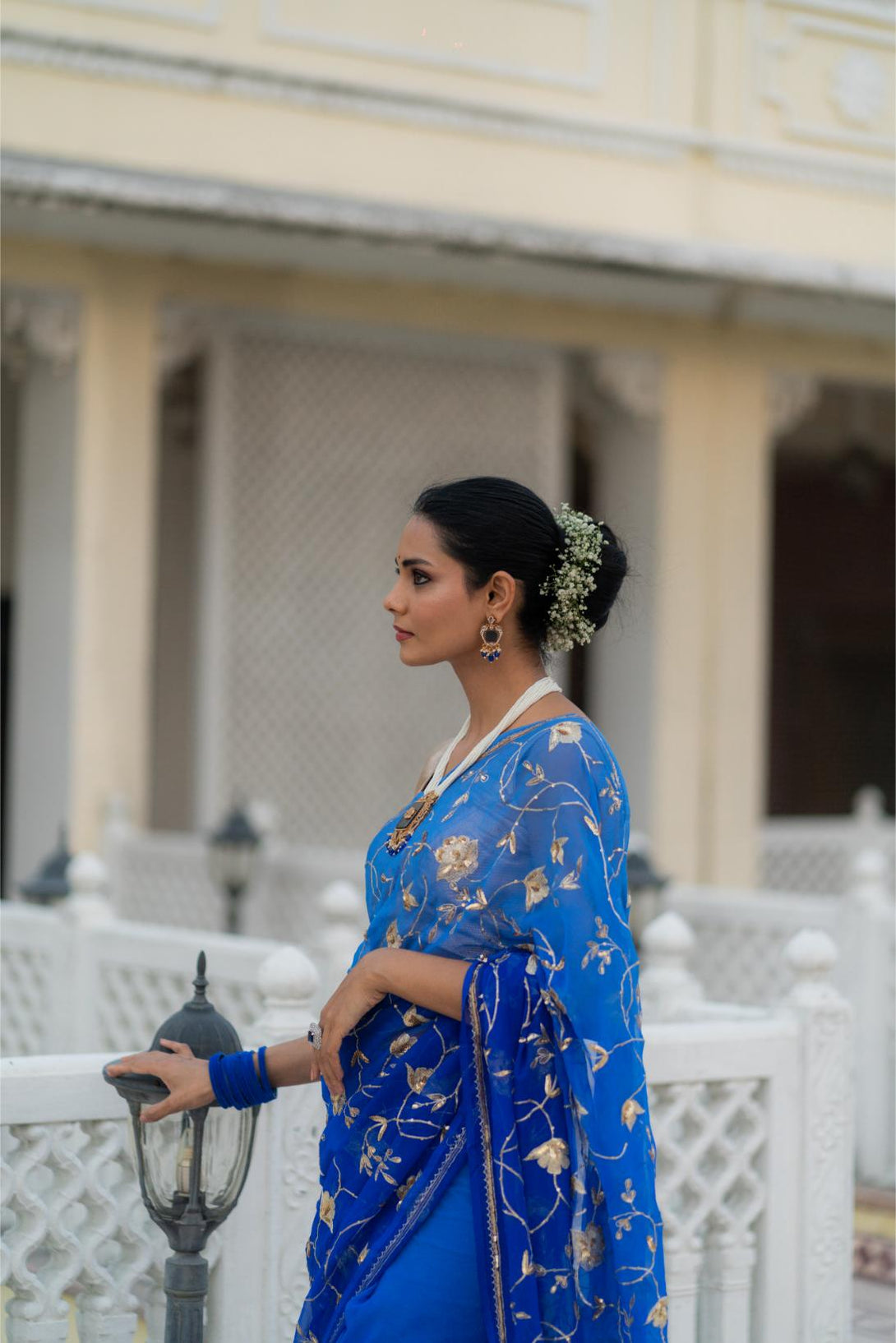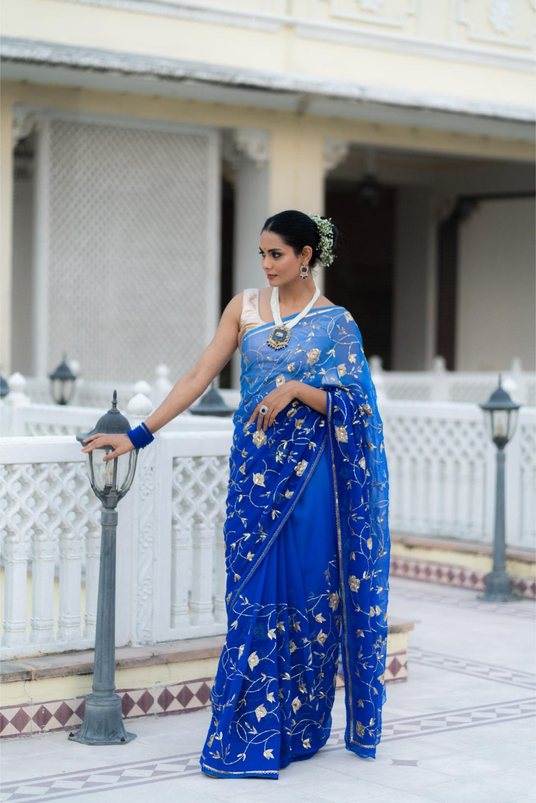 This Blue Shaded Pure Chiffon Saree with heavy jaal work is a perfect blend of elegance and artistry. The ombre blue shades add a modern twist, while the intricate jaal embroidery enhances the saree’s luxurious appeal. Lightweight and graceful, this saree is ideal for evening parties and special occasions, ensuring you stand out in style.