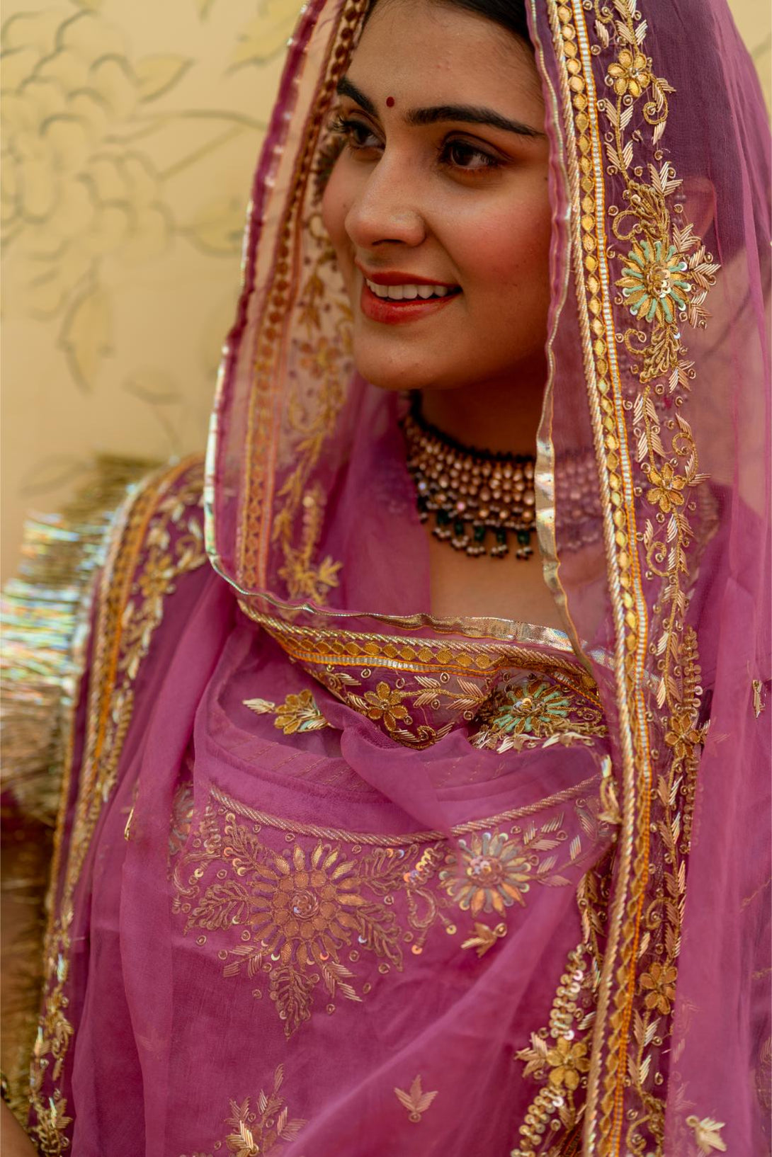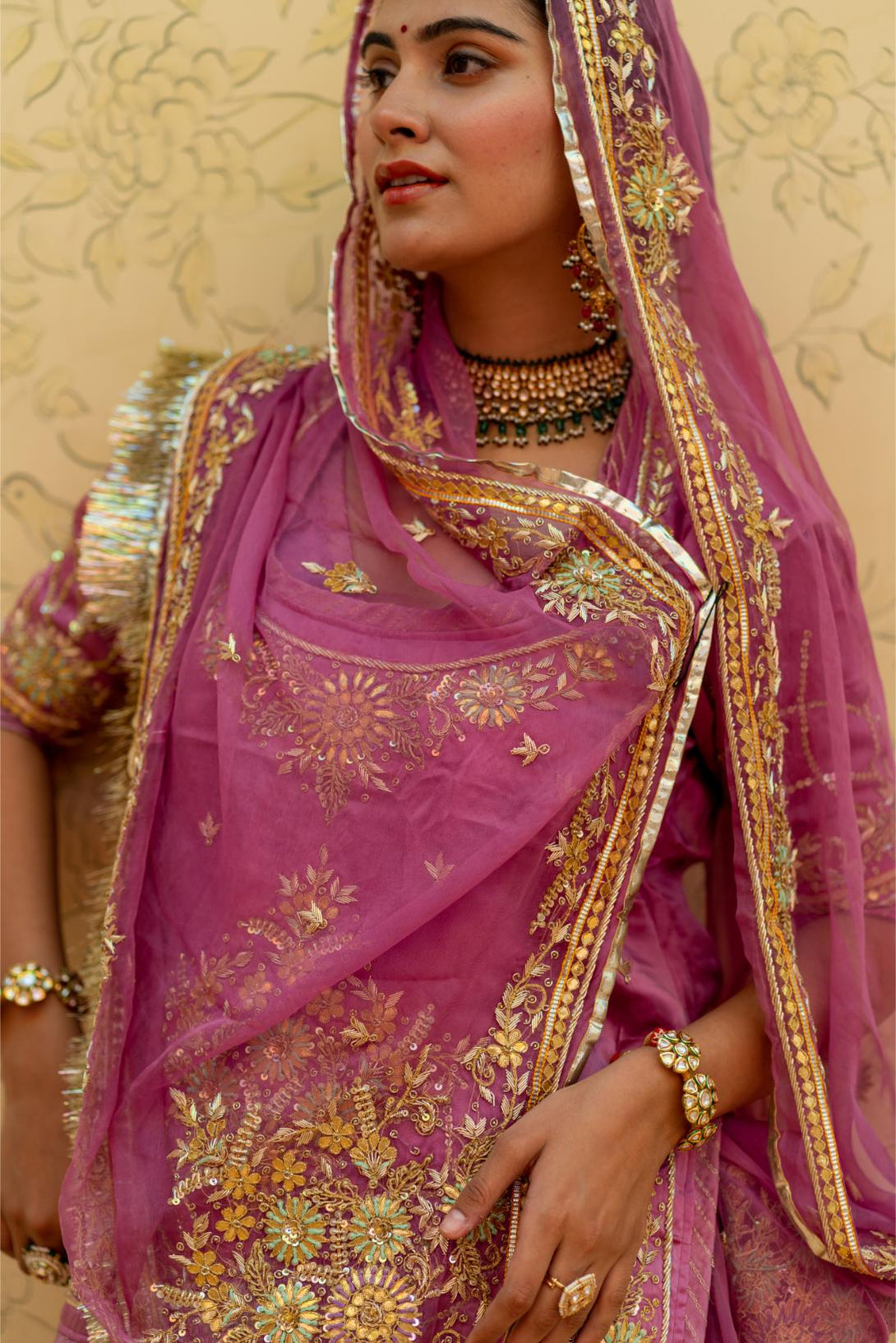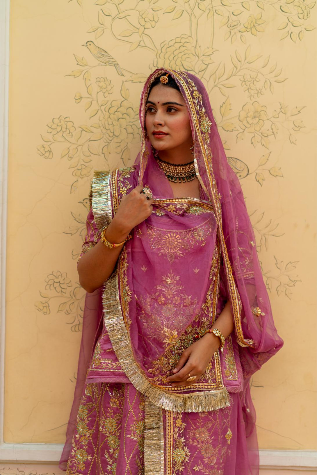 Heavy Bridal Satin Poshak With Zari, Resham, Gota Patti Work