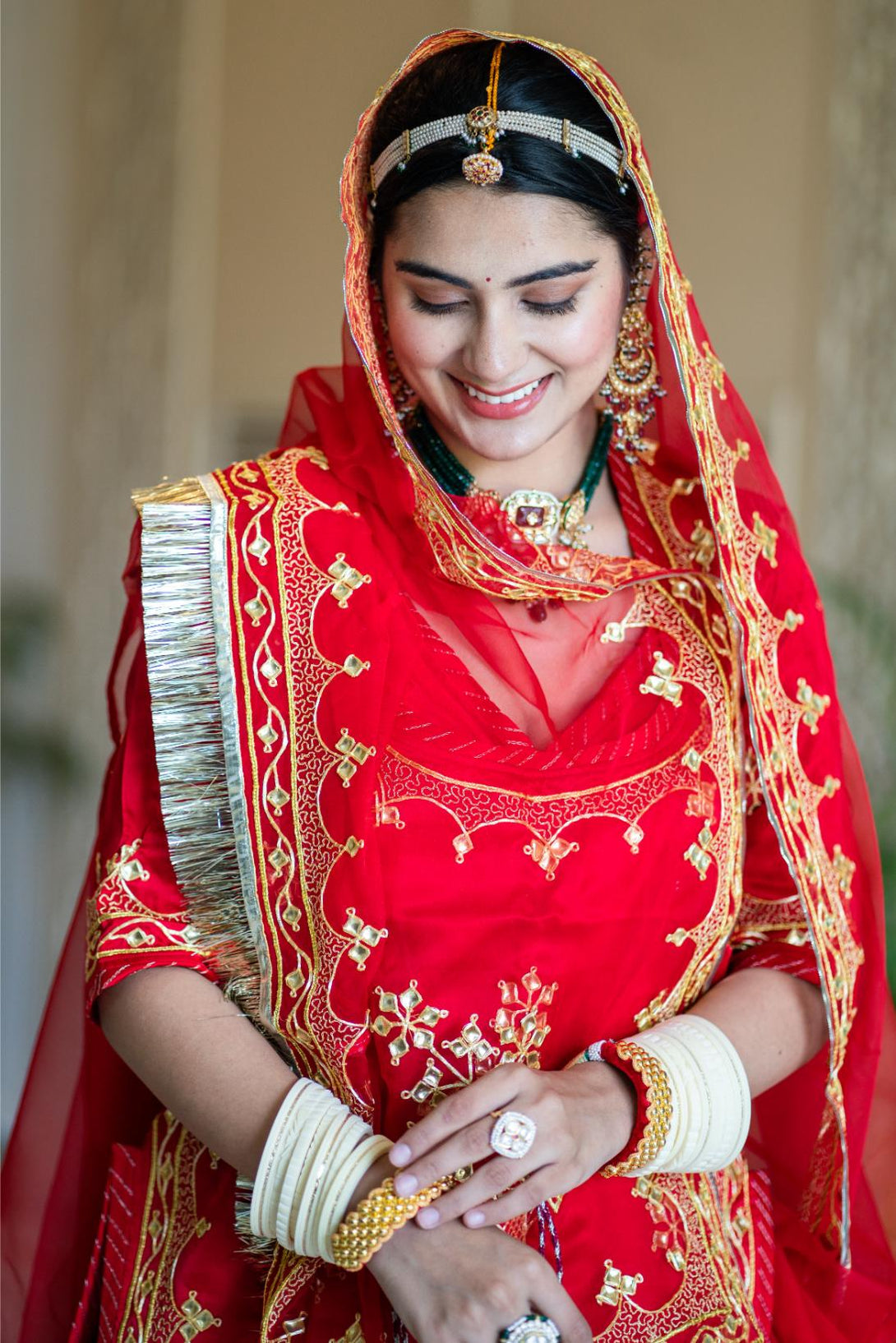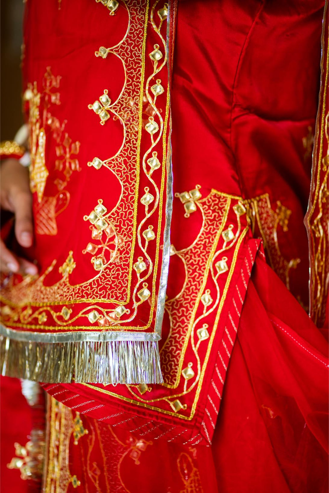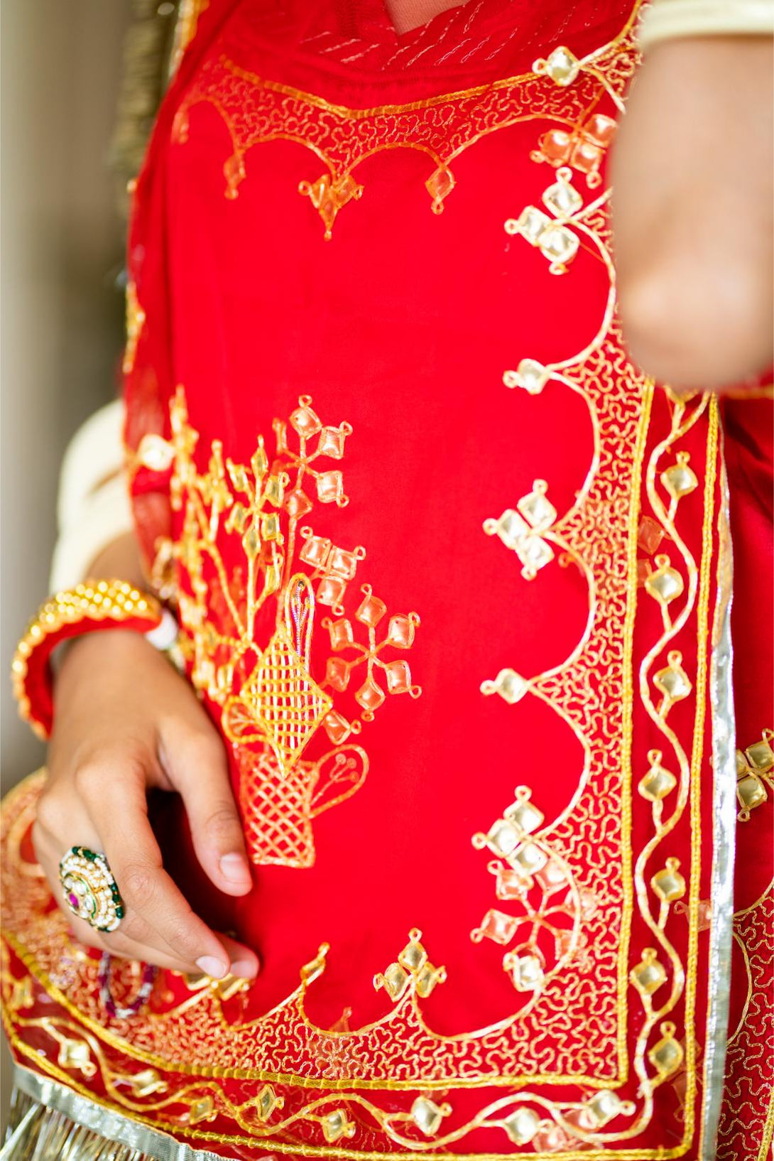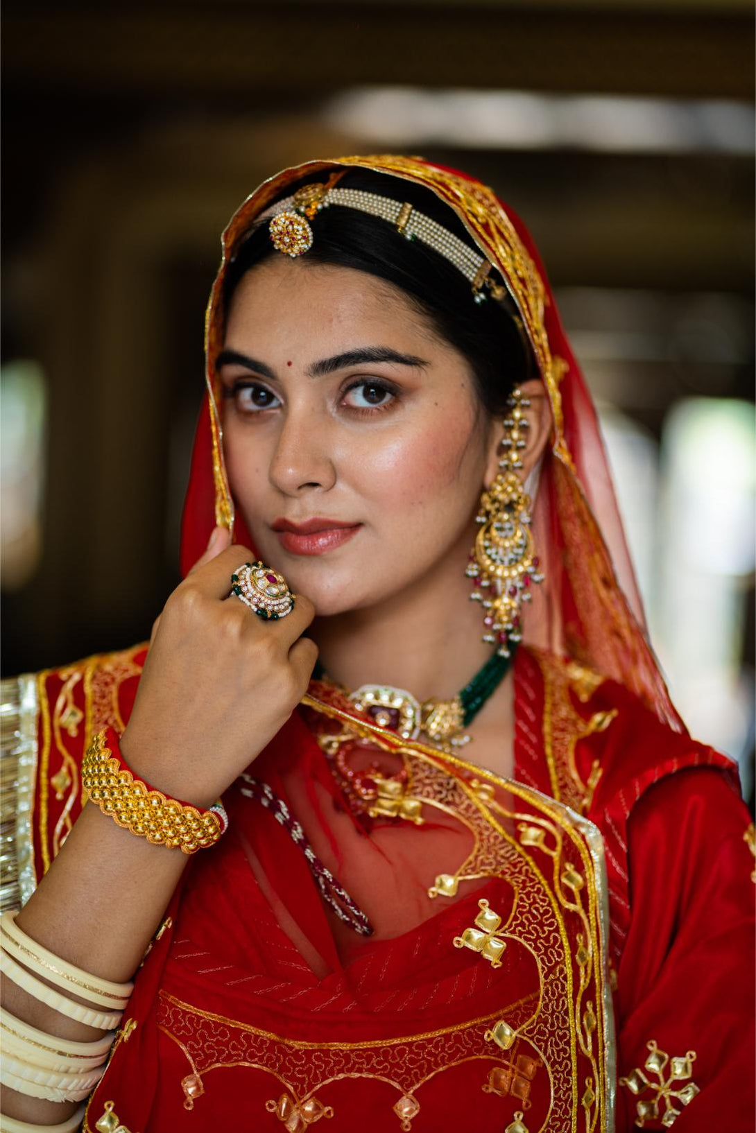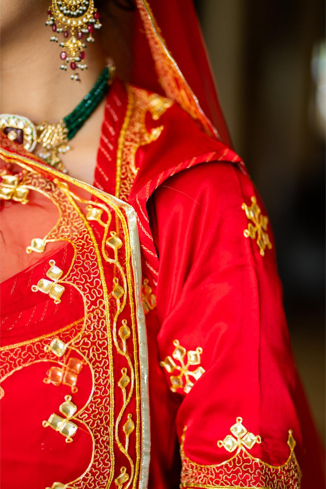 This Red Bridal Danka Work Poshak is the epitome of grandeur and tradition. Adorned with intricate Danka work, the vibrant red fabric shines with a regal touch, making it perfect for brides who want to stand out on their special day. The rich embroidery enhances the poshak's opulence, ensuring a breathtaking look for weddings and ceremonial occasions.